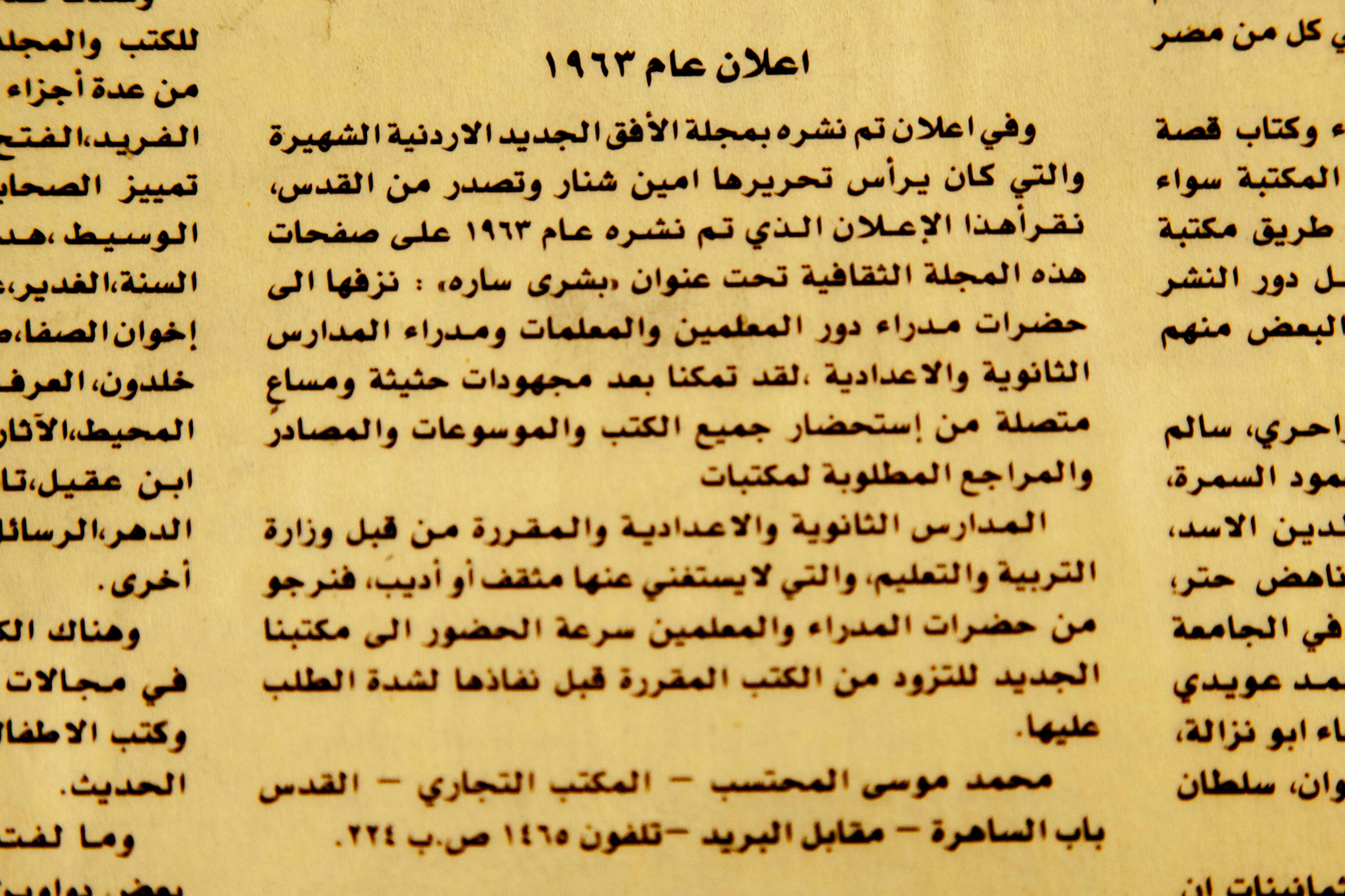 Although the bookstore’s founder had twenty-four sons and daughters, Uncle Nabil was the only one who cared to keep the bookstore alive and continued its legacy.Uncle Nabil says about his father:“My father was illiterate—he couldn’t write and could barely read. He used to travel to Egypt and order between five and twenty-five copies of every new book released to the market. He always insisted that every book had its reader, and if a book sold well, he’d go back and order a thousand copies.”
