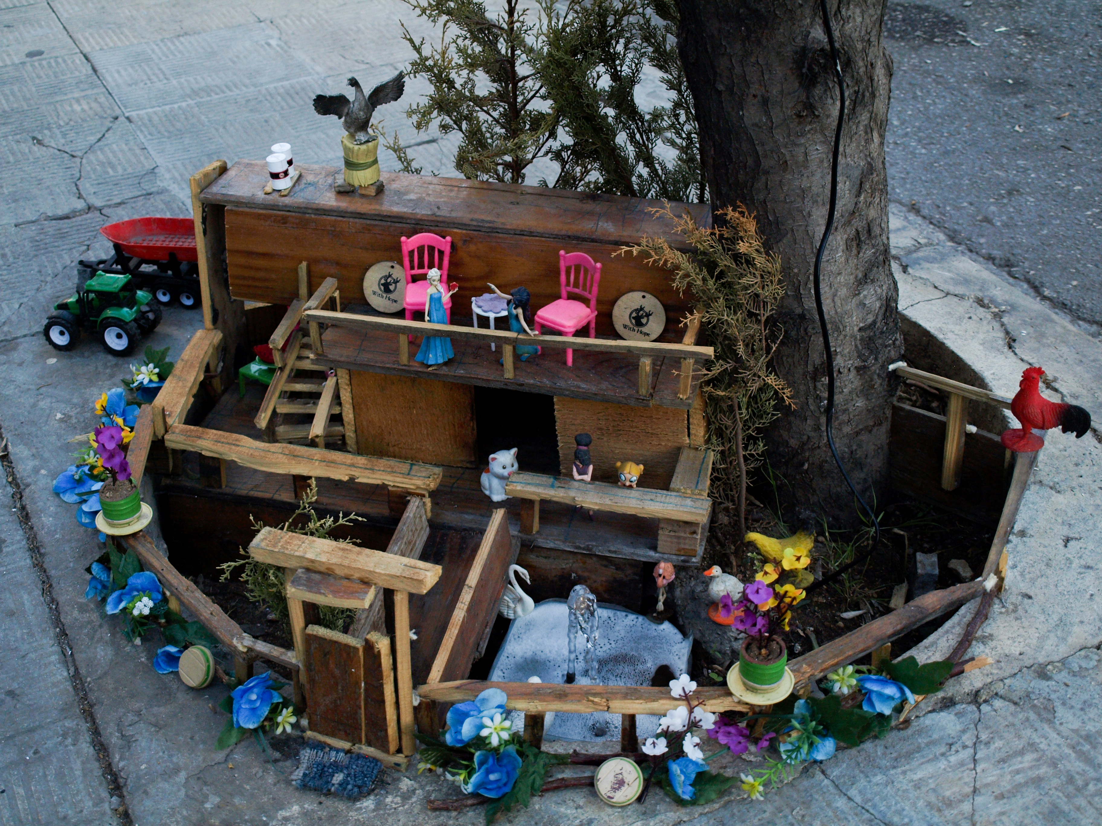 He began building miniature architectural models around the tree trunks, saying: “I’m creating something like a city—a house and a garden.”