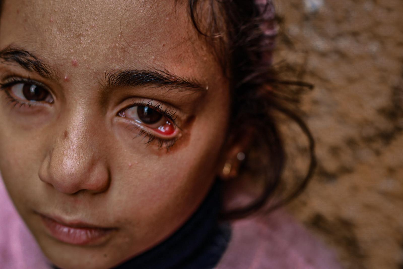 Rimas was with her parents and siblings in their home while her mother prepared food when the first missile struck. The blast hit her in the eye and head.