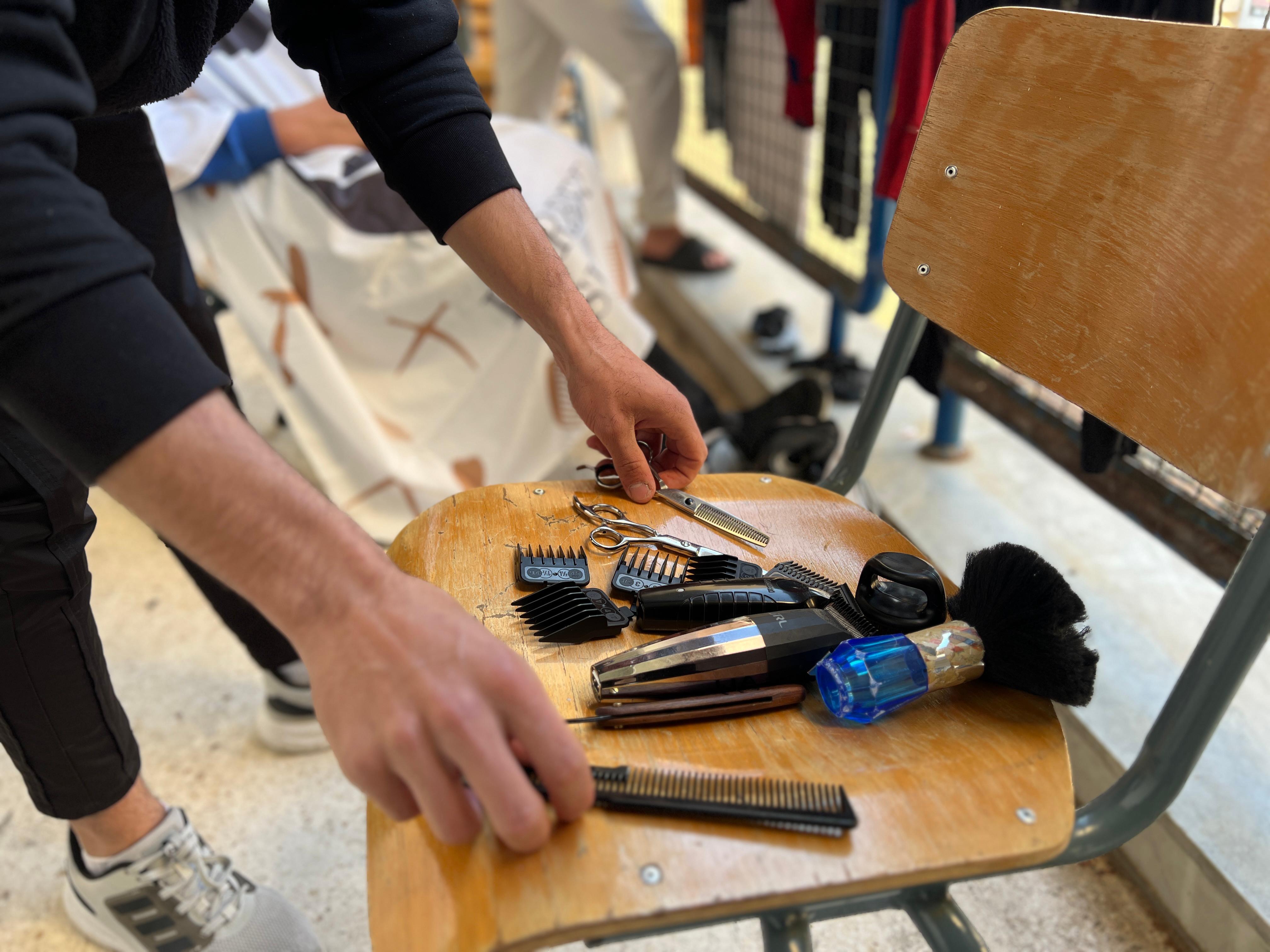 For Ali, what he is doing is a simple attempt to lift people’s spirits, even if only symbolically. In a place filled with anxiety and waiting, a haircut can restore a small sense of normal life.