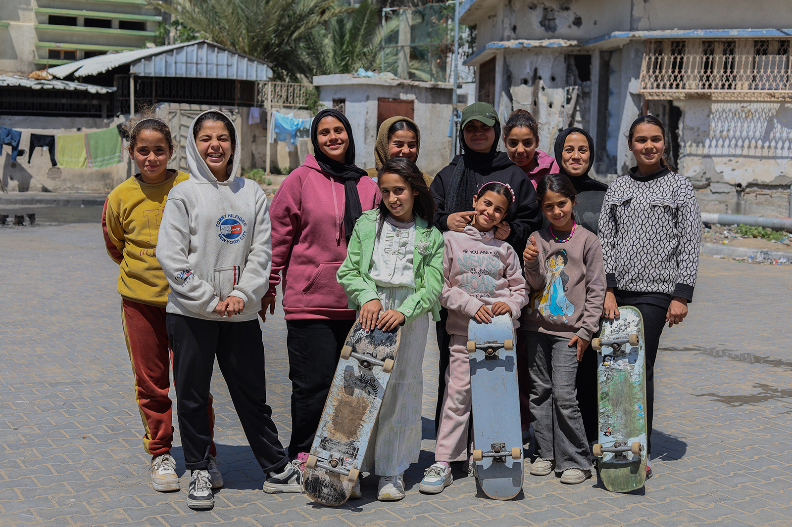 In a displacement camp in Gaza, Rimas Daloul, 16, continues to hold on to what she started as a child. She first stepped onto a skateboard at the age of seven, after receiving her first board as a birthday gift. Since then, she hasn’t stopped.