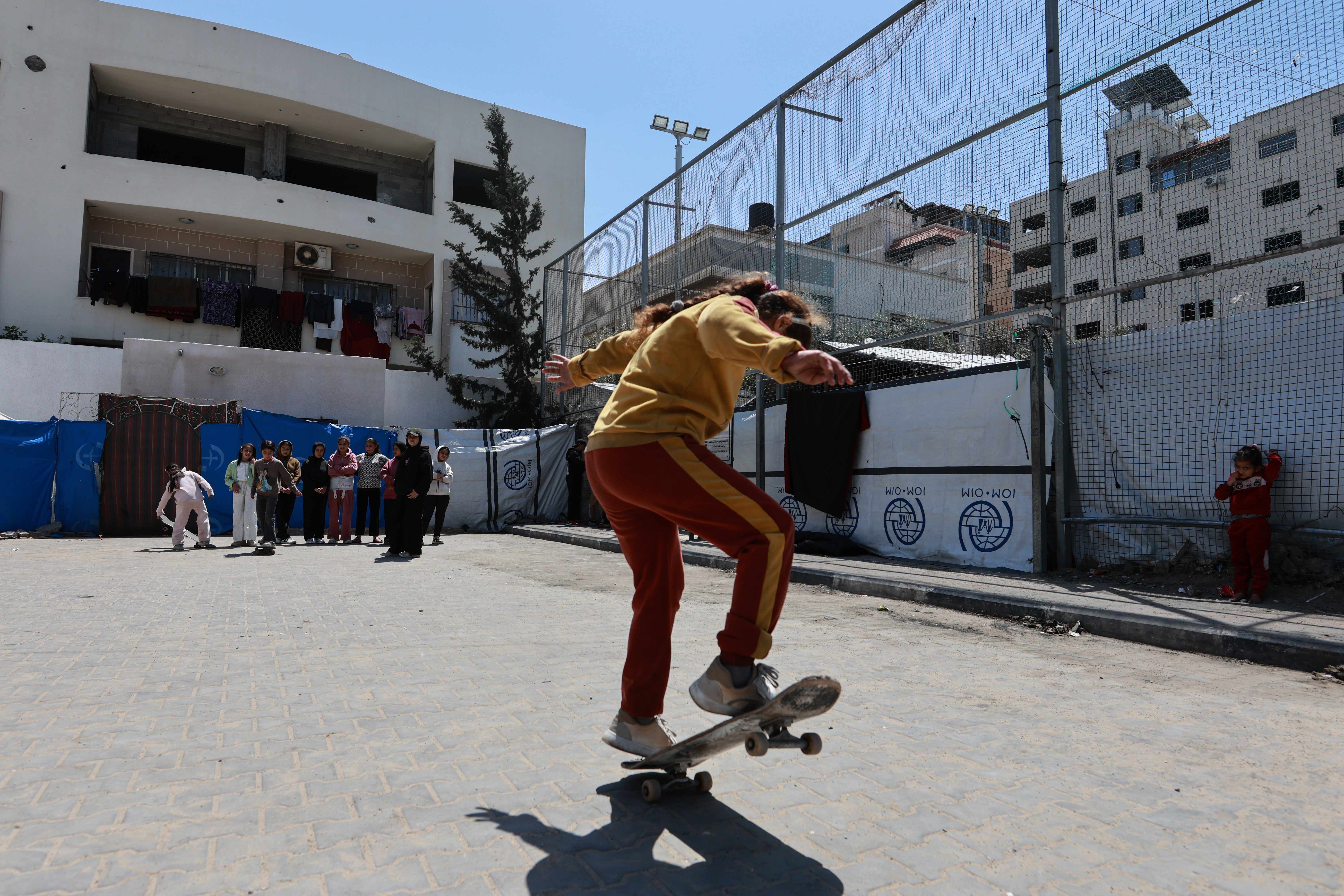 During the war, her education was interrupted for two years, as she and her family were displaced multiple times across northern Gaza. Amid bombardment and hunger, skateboarding became more than a hobby—it became a way to cope, a brief escape from fear.