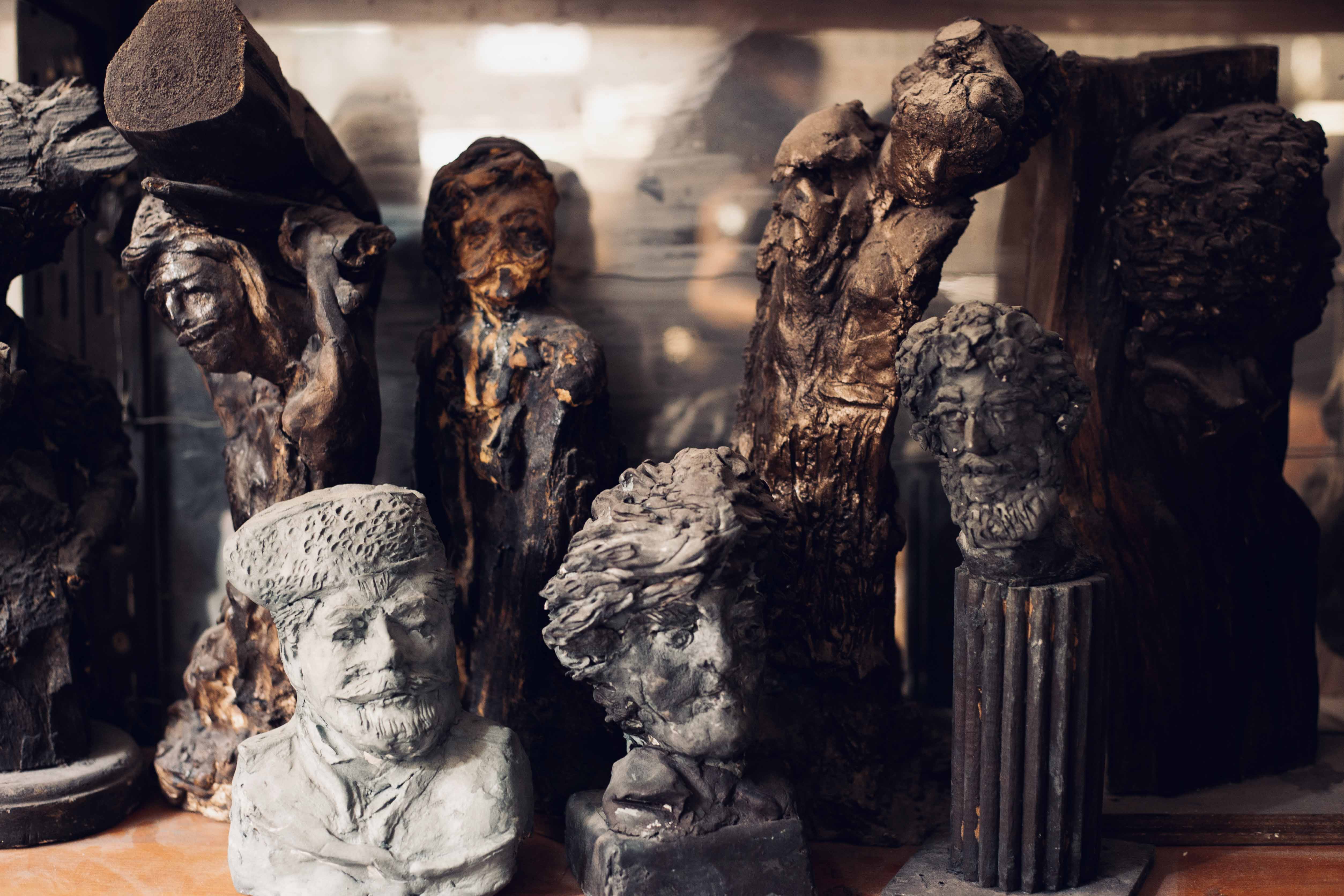 Inside this small shop, he creates portraits, statues, and memorials on commission, working with stone, wood, plaster, and bronze. Every piece that passes through his hands is given its time. For him, a work is not simply completed and left behind. A relationship forms between him and the material; every stone or piece of wood carries the potential for a new form not yet born. That is why he chooses his materials carefully and treats them with patience.