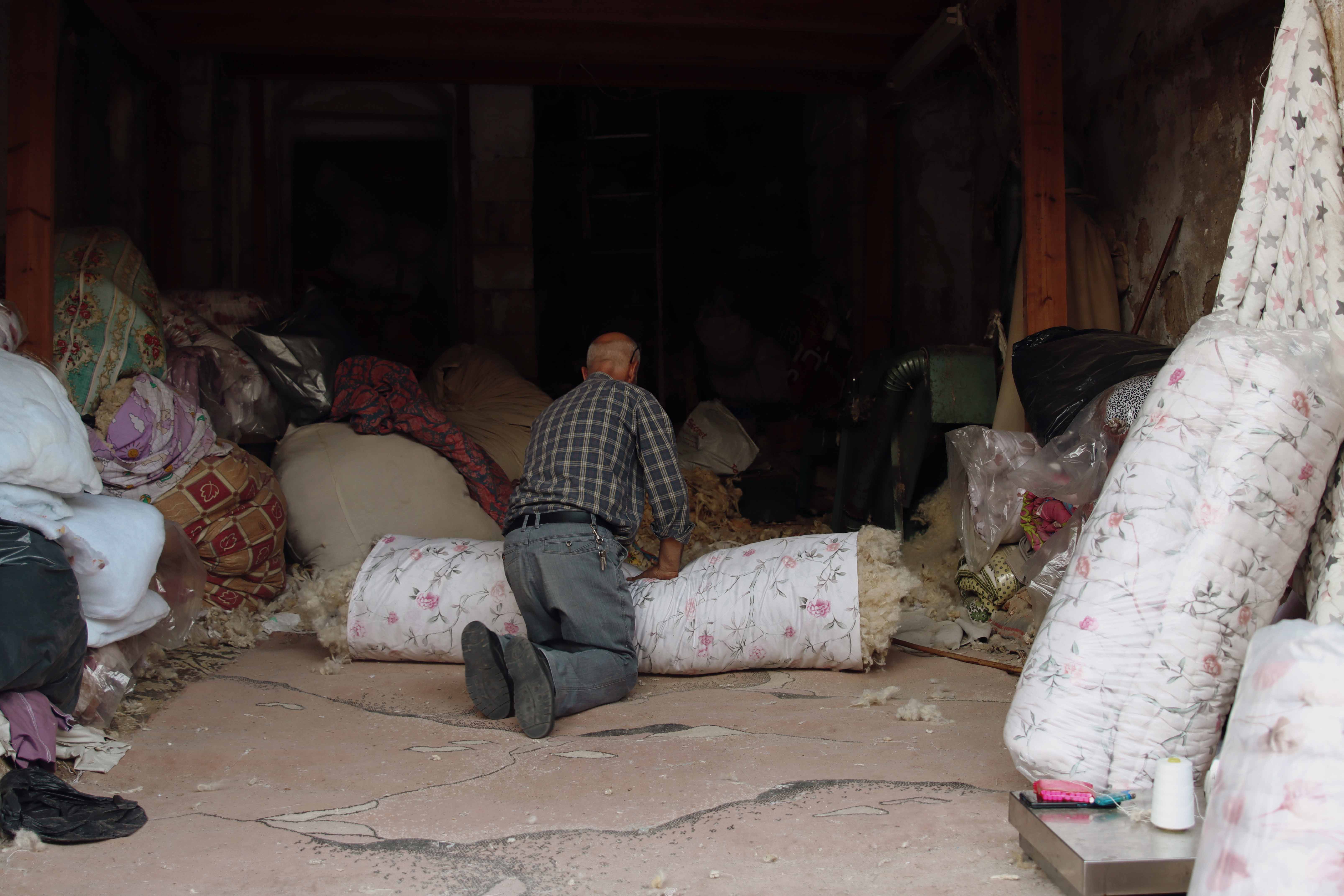 Despite the declining demand for handmade crafts today—due to their high cost and the time and labor they require compared to manufactured products—Hakam remains steadfast in his profession. Some customers still arrive carrying old quilts inherited from their mothers and grandmothers, asking for them to be renewed, as if seeking to revive a fragment of the memory of the old home.